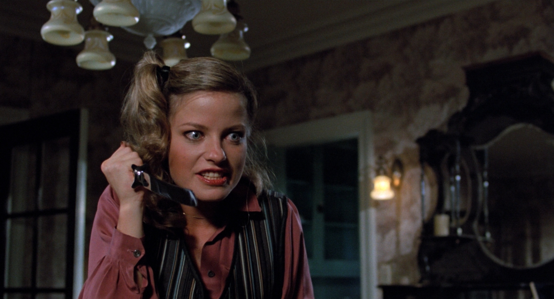 I dig the colour palette of Full Moon High, which consists of deep blacks and various shades of yellow and orange. Presented in the film’s original aspect ratio of 1.85:1, there’s a subtle matte finish to the image, which looks great in 1080p, and a high bitrate prevents posterization effects. Uncompressed LPCM audio (original mono presentation) is loud with decent bass and is crystal clear. Optional English subtitles are included.